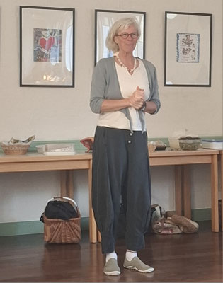 Nach dem kulinarischen Teil hieß es dann: Bewegung statt Müdigkeit! Zunächst erklärte uns Yogalehrerin Ulrike Schmitz aus Uelsby die 8 Stufen des Yoga. Danach führte sie die Landfrauen in die Praxis des Stuhlyoga ein. Mit Ruhe, Humor und fachkundiger Anleitung zeigte sie, wie man auch im Sitzen oder mit kleinen Bewegungen zu mehr Beweglichkeit, Entspannung und innerer Balance finden kann. Die Übungen ließen sich leicht umsetzen und gaben wertvolle Anregungen für den Alltag.