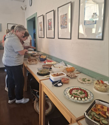 Zum Auftakt erwartete die Teilnehmerinnen ein buntes Buffet mit einer großen Auswahl an veganen und vegetarischen Speisen. Mit viel Liebe zubereitet, bot es für jede Geschmacksvorliebe etwas und lud zum Probieren und Genießen ein.