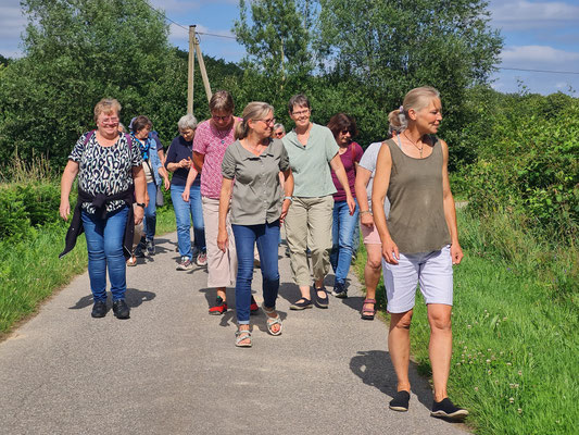 Am 9.Juli trafen sich 21 Landfrauen aus Ekebergkrug und Umgebung e.V. in Uelsby zu einer informativen und genussvollen Wildkräuterwanderung. Gemeinsam spazierten wir bei bestem Wetter durch die Umgebung, wo uns Frau Catrin Frank mit viel Fachwissen und Begeisterung die heimische Pflanzenwelt näherbrachte.